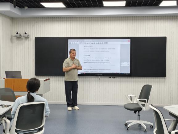 太阳tyc集团5997于2025年5月27日在博文楼251教室,成功举办第五期“英语沙龙”活动。此次活动邀请到外教Dr. Daniel Wicomb,与学生展开深入交流,推动多元文化视角的相互学习和借鉴,全方位促进语言技能的增强和国际视野的拓宽。本次活动,Dr. Daniel Wicomb 老师依旧以“Good afternoon!”和“How are you?”作为开场白,随后与同学们进行了深入地互动交流,了解了同学们的姓名和爱好等个人信息。接着,他引导大家参与了开火车、命...