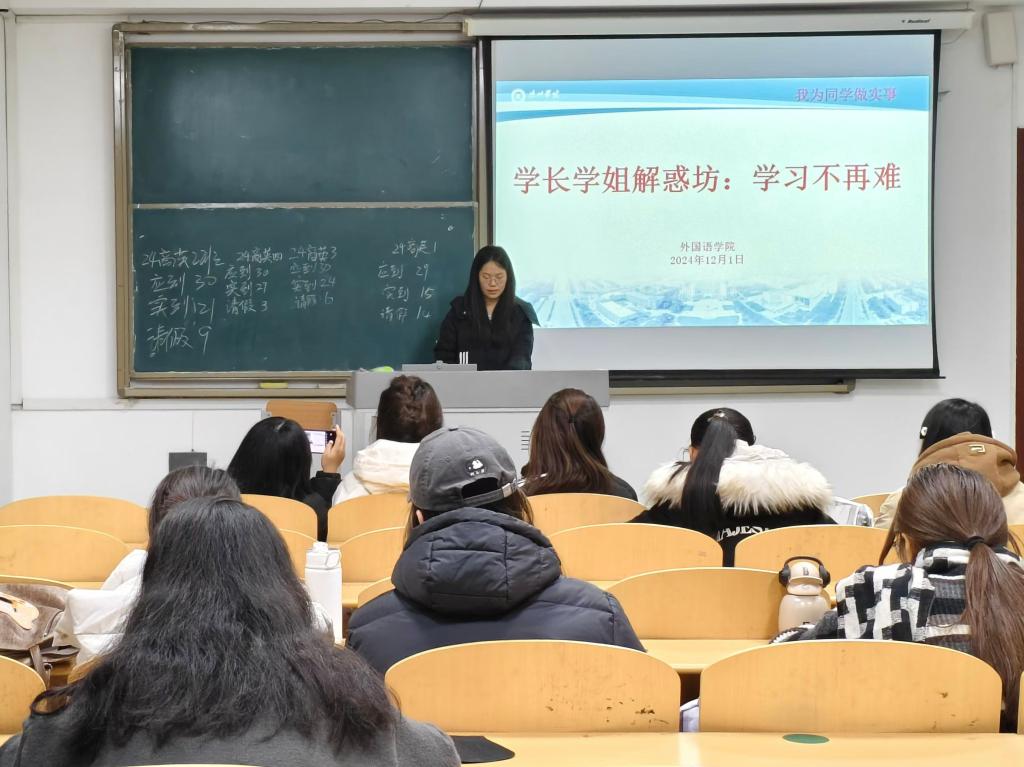 太阳tyc集团5997于12月1日在博文楼227举办了“学长学姐解惑坊:学习不再难”交流研讨会,通过问答解惑的形式,助力学风建设,引导学生树立正确的学习观念。此次交流研讨会,问题涵盖多个方面。在期末考试类问题中,同学们关心期末考试如何算绩点、各类网课学习情况在期末考试中占比多少以及哪些科目进行线上考试等;日常学习类问题则集中在是否需要根据专业特点学习第二外语,以及四六级和专四专八等考试相关情况;还有部分同学提出...