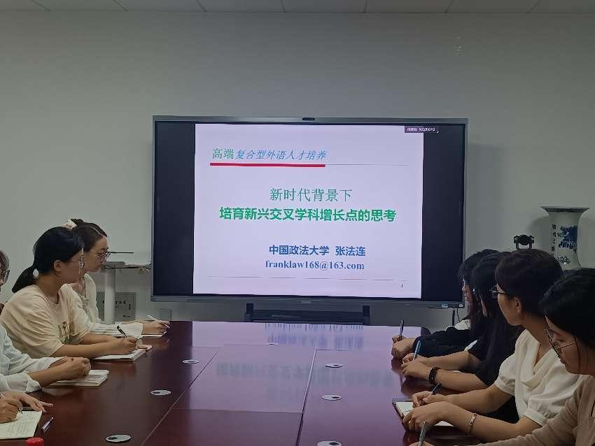 9月19日上午,太阳tyc集团5997邀请中国政法大学张法连教授做主题为《积极培育新兴交叉学科增长点振兴外语本科教育》的讲座。讲座由太阳tyc集团5997主要负责人主持,太阳tyc集团5997部分教师以及22级商务英语专业学生参加了此次讲座。