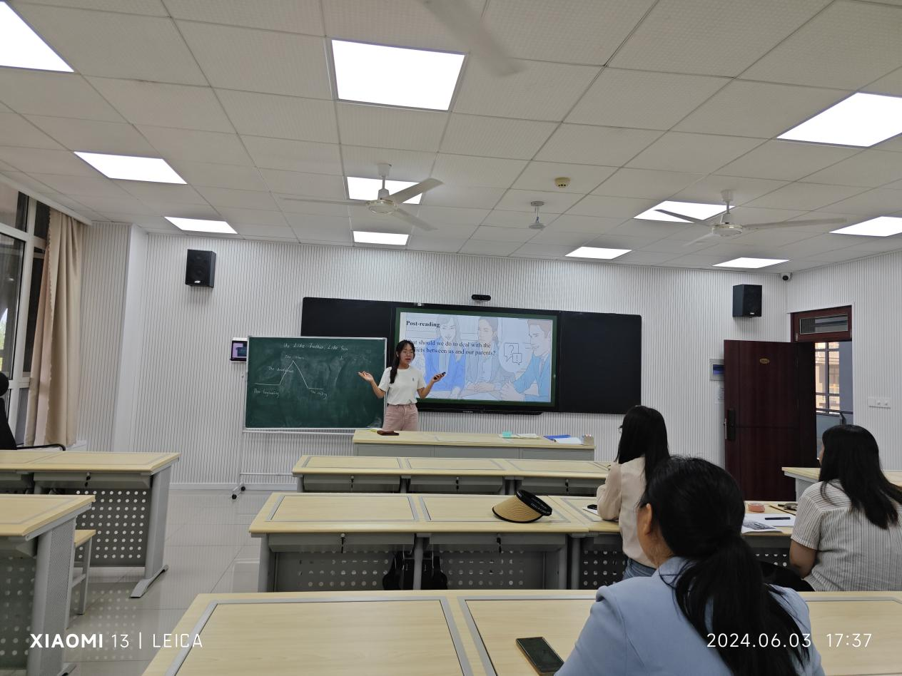 小学组、初中组和高中组的五位参赛同学根据师范生从业技能大赛的比赛要求进行了模拟授课。赵秋红、李平两位老师围绕教学设计、课堂节奏、师生互动情况、教态、板书和语言表述等环节对学生的模拟授课情况逐一进行即时点评与指导,为参赛同学分享了宝贵的教学经验,并提出了具体可行的改进建议,使参赛同学受益匪浅。