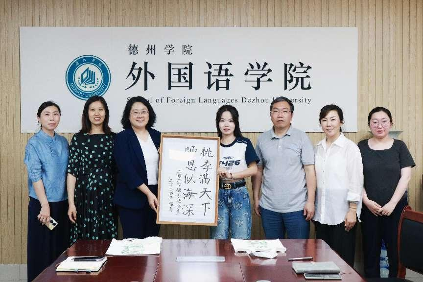 学院为所有毕业生准备了德院文创工艺品作为毕业礼物,并为毕业生代表分发礼物。毕业生代表向母校献礼,通过毛笔字展现对母校的深厚感情。