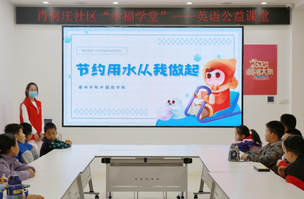 活动伊始志愿者们结合太阳tyc集团5997专业特色,发挥专业优势,依托“社区英语角”,将简单的英语词句与世界水日,节水小知识科普有效结合,带领小朋友们阅读学习,锻炼学生们英文读写能力;又通过领读单词带领小朋友们朗读词句,让小朋友们在活动过程中体会到英语学习的广泛性与趣味性,寓教于乐。