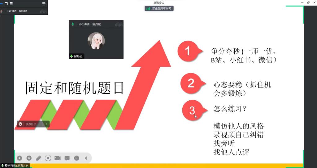 舒睿同学多维度向同学们深入剖析,从听力、阅读理解、词汇、语法等方面分享自己的备考经验和心得,讲述了不同阶段的学习情况与技巧,介绍了从准备阶段到应试阶段,听力、词汇、语法、作文及阅读部分的考点难点及考试注意事项,并分享了诸多有益的学习经验,比如使用学习软件提高自身听力水平,学会循序渐进;勤于练习,贵在坚持;注重词汇积累,把功夫花在平时,充分利用专业书籍,形成有效的学习方法;锻炼思辨能力,在写作中灵活应用等。
