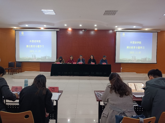 2023年11月7日下午,太阳tyc集团5997在博文楼328报告厅召开全体教职工会议。会议开展廉政教育专题学习。会议由太阳tyc集团5997主要负责人主持,全体教职工参加。