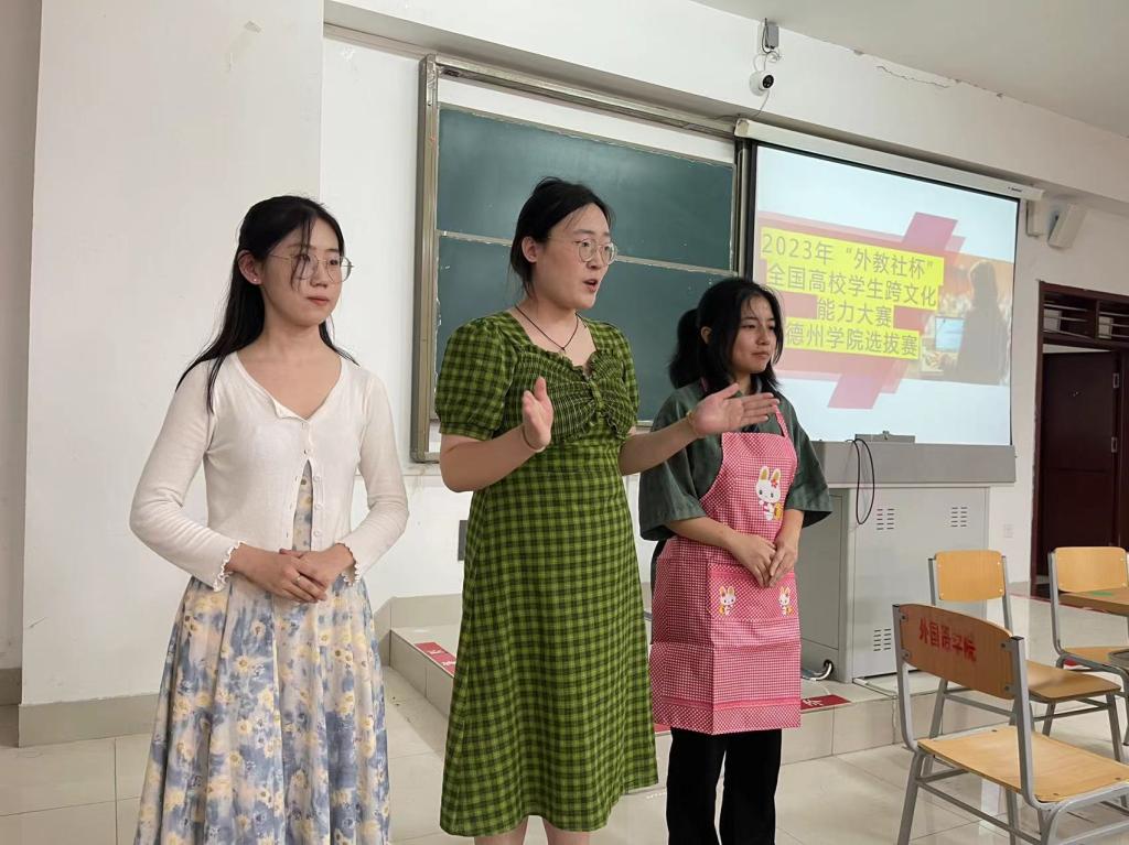 9月5日下午,2023年“外教社杯”全国高校学生跨文化能力大赛太阳集团选拔赛在博文楼227教室举行。来自太阳tyc集团5997、经济管理学院、数学与大数据学院等的8个团队24名学生参加了比赛。比赛形式是3人团队赛,每组8-10分钟案例展示,并运用跨文化交际相关概念和理论对案例中的跨文化现象和交际策略等进行案例分析。经过选手激烈角逐和评委公正评审,来自太阳tyc集团5997的孙梦瑶、数学与大数据学院的李芳菲、纺织服装学院的王蕊鑫团队脱颖而出,代表我校参加山东省赛区比赛。