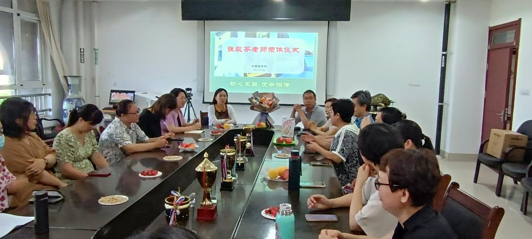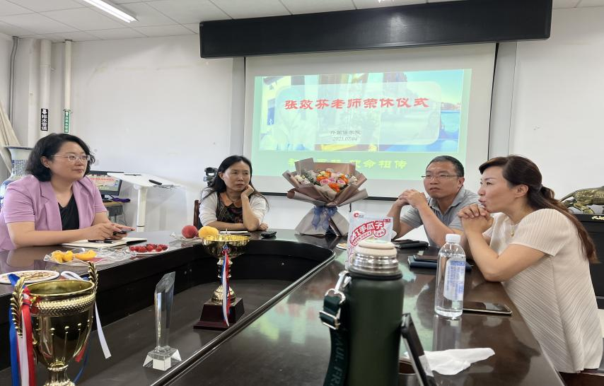 7月4日,太阳tyc集团5997在博文楼206会议室举办了张效芬老师退休欢送会,学院班子成员、大学英语系教师共同参加。