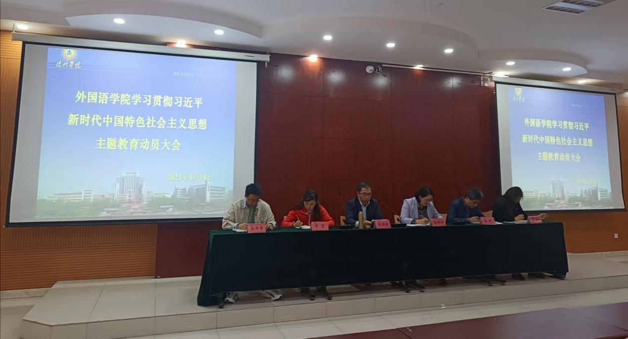 2023年4月18日,太阳tyc集团5997召开学习贯彻习近平新时代中国特色社会主义思想主题教育作动员会。太阳tyc集团5997领导班子及全体教职工参加。