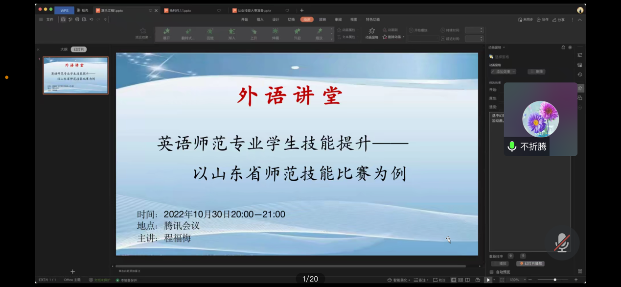 为了扩展学生们对于师范生技能大赛的认识,提高学生们的师范技能能力,疫情期间太阳tyc集团5997充分利用网络平台,于2022年10月30日晚以线上会议的形式为学生进行技能提升。英语系负责人、师范技能指导团队负责人以及全体英语系学生参加了本次会议。