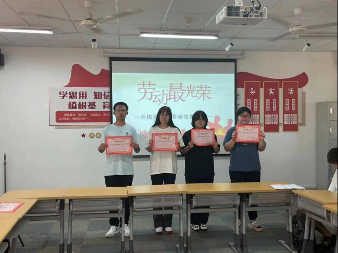 张强老师向先进班级和先进个人颁发荣誉证书,并对劳动实践教育活动中大家的合作、团结精神以及集体劳动观念予以肯定。
