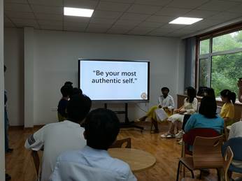 Dahlia老师通过目前青年生活发展现状引入,使同学们思考自己所处环境及未来需求。整个活动过程中,不仅仅没有枯燥的ppt,老师还为同学们准备了许多图片和视频,期间还穿插着老师和同学们精彩的讨论。老师邀请不同学院不同年级的七名同学作为代表,交流关于当今大学生对于喜爱热点等不同问题的看法。在整个活动过程中,老师非常有耐心,为了让每个人都能放松,都能参与到活动中来,老师先同各位同学进行了简单的会话,鼓励大家大胆地表达自己的想法,同学们也都报以积极的回应。整个活动过程非常精彩和有趣,同学们在收获快乐的同时还学到了知识,也进一步提高了自己的英语表达能力。