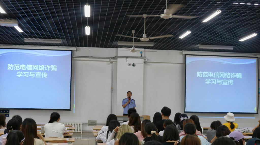 来自德州市德城区湖滨北路派出所田欣警官为同学们作了题为“防范电信网络诈骗学习与宣传”的专题讲座。田警官针对电信网络诈骗的常见类型、特点、受害群体及社会危害等内容进行讲解,并结合典型案例,深入浅出地讲解了有关冒充公检法工作人员诈骗、冒充客户退款诈骗、电话欠费、短信中奖、信用卡提升额度骗术、网络刷单等案例,提醒同学们要提高自己的防范意识,不要让坏人有机可乘,杜绝“贪小便宜、受大损失”的事情发生。