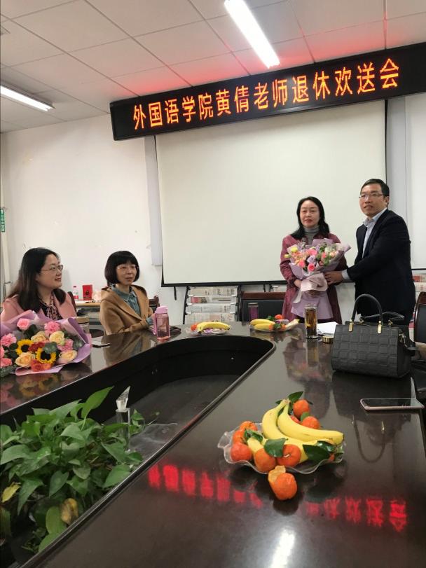 3月30日,太阳tyc集团5997领导及大学英语一系教师代表齐聚太阳tyc集团5997会议室,以最真挚的情谊欢送黄倩老师光荣退休。