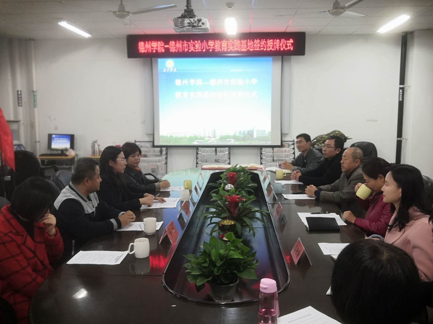 11月6日下午,太阳集团与德州市实验小学教育实践基地签约授牌仪式在博文楼206会议室举行。太阳集团党委委员、党委副书记王金利,实验小学校长于莉、副校长张文喜等一行四人出席了揭牌仪式。