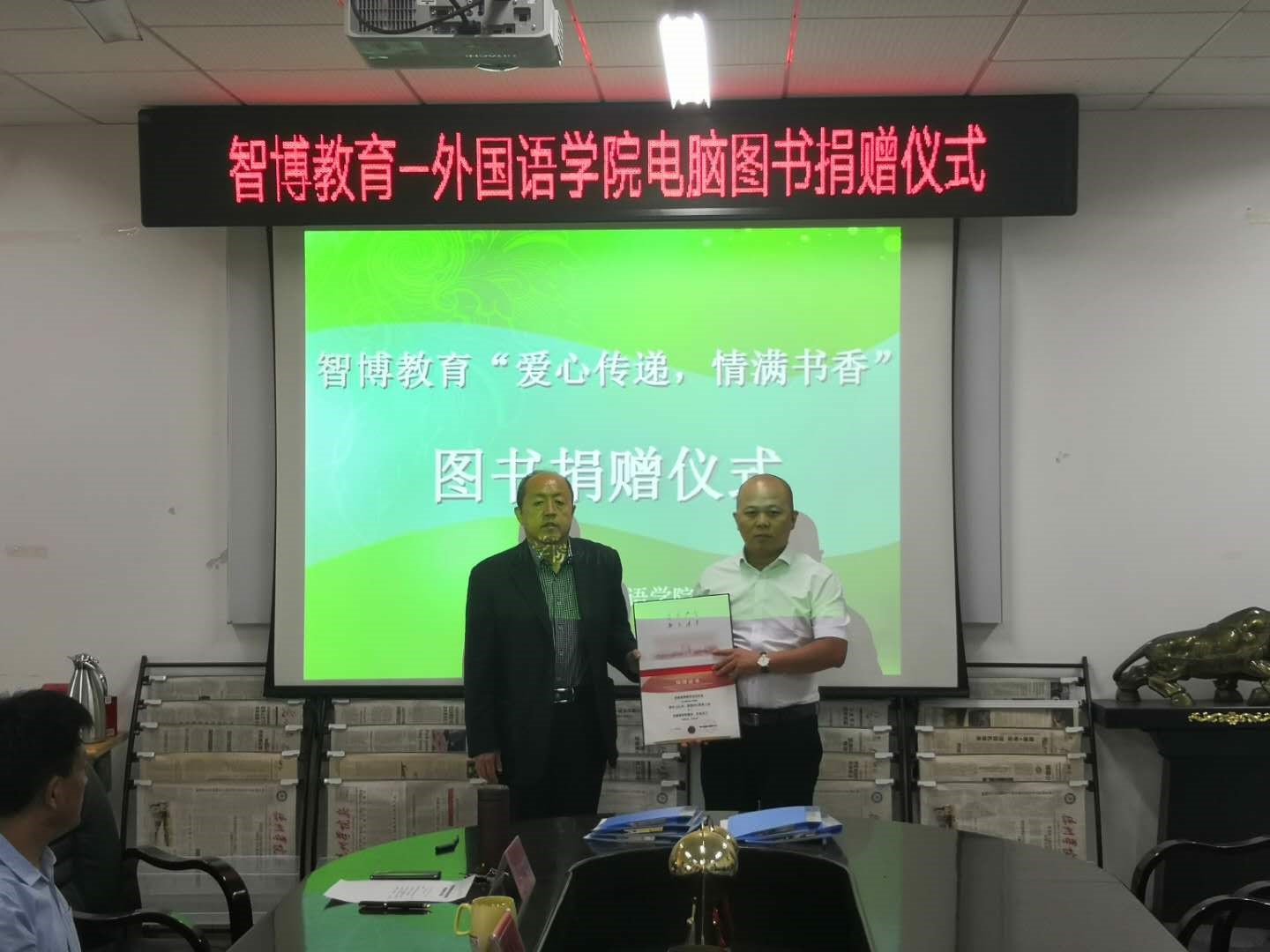 太阳tyc集团5997党总支书记对智博教育培训学校的慷慨捐赠表示感谢,并指出此次图书捐赠既是智博教育积极支持外院发展,聚集各种办学资源,提升办学水平的有力体现,也是学院吸纳校外教育资源、服务人才培养的有效方式。