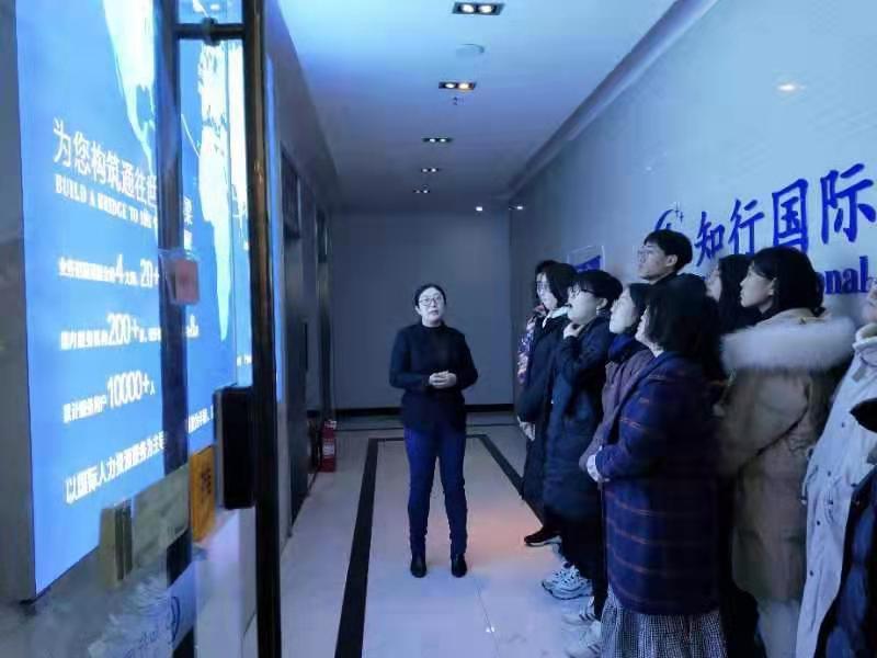 12月27日上午,30名同学在老师的带领下来到了青岛知行国际。青岛知行校企合作部的刘总监带领大家参观了公司,详细介绍了公司的业务种类和每个部门的职责、知行国际取得的业绩、企业文化等,重点介绍了日语专业毕业生在国内就职的岗位和赴日就职的岗位,特别是赴日就职岗位的内容、待遇和未来发展的方向等,给同学们提供了国内就业和海外就职双重选择。最特别是日企面试模拟环节,不仅让大家了解了日企面试的注意事项也知道了日企面试的要求。