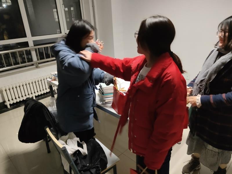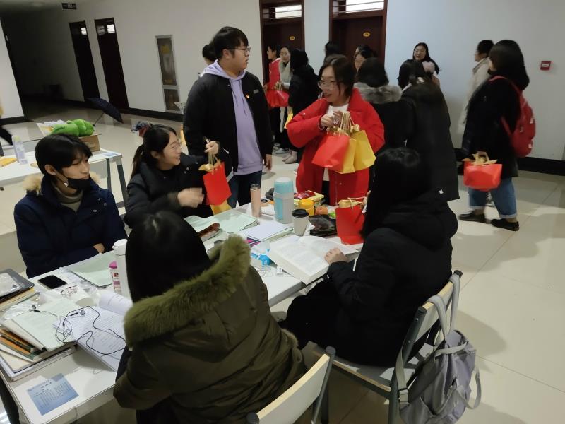 慰问活动中,朱馨馨老师肯定了考研学子一年来的辛苦付出,鼓励同学们要充满理想、坚定信念,保持平和心态,全力拼搏,不留遗憾。同时为大家分发了学生党支部为大家精心准备的“考研温暖包”,为所有坚持在考研路上的学子送去一份寒冬中的关怀和祝福。温暖包中有暖贴、桂花福袋、祝福卡片等物品,意在叮嘱同学们在考研冲刺阶段,要注意保暖御寒,希望同学们一路桂花飘香,勇夺桂冠!