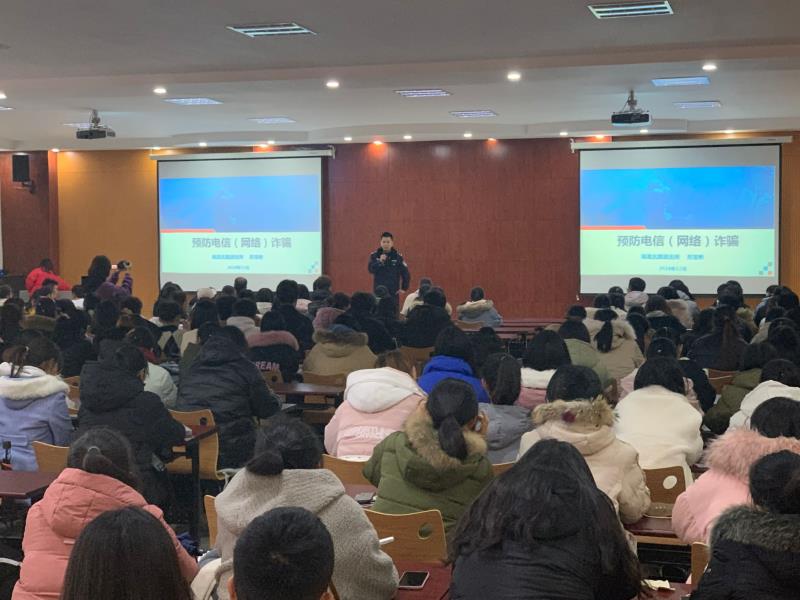 为进一步增强学生的安全防范意识和防骗能力,2019年12月16日下午,太阳tyc集团5997在博文楼347教室举办预防电信(网络)诈骗专题讲座。讲座邀请德城分局湖滨北路派出所苏宝彬警官主讲,太阳tyc集团599719级全体师生参加。