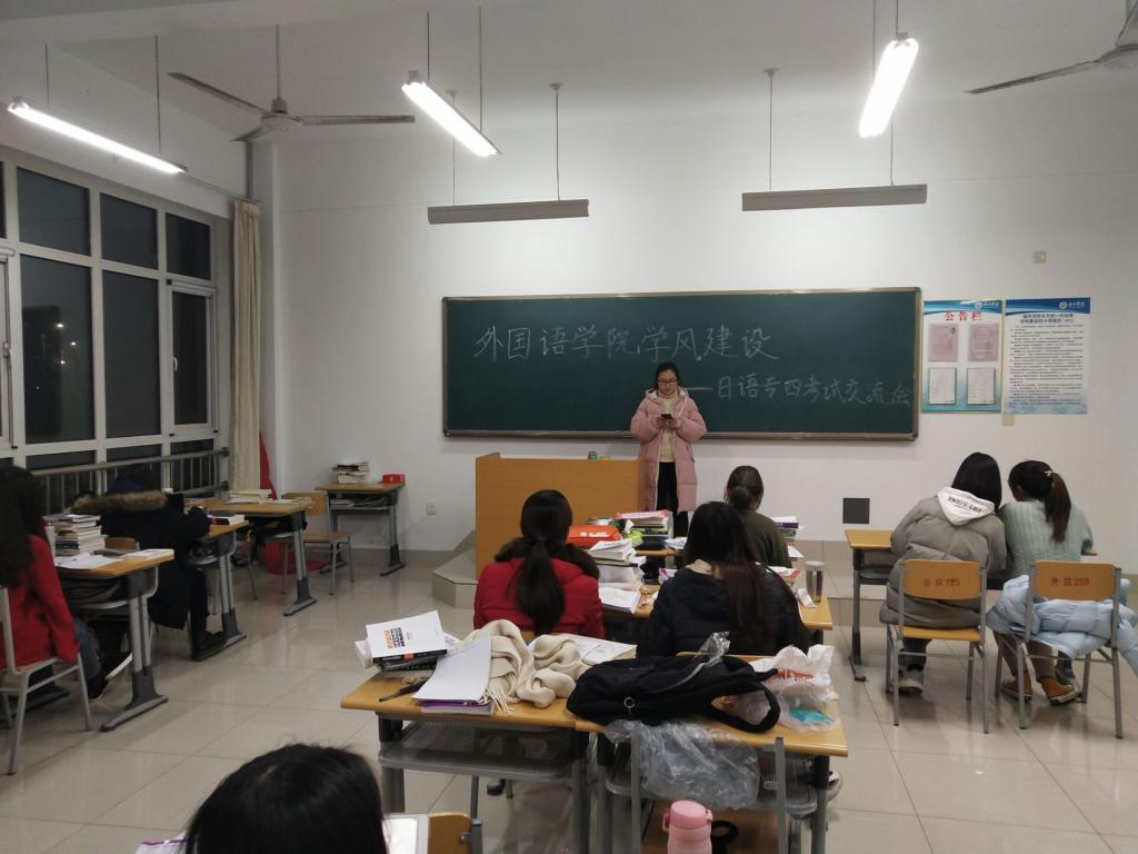 为了让同学们更好地掌握日语专四的考试技巧,增强同学们对专四考试的信心,调整考前心态。太阳tyc集团5997特于2019年12月10日在博文楼213教室举行了太阳tyc集团5997学风建设——日语专四考试交流会。