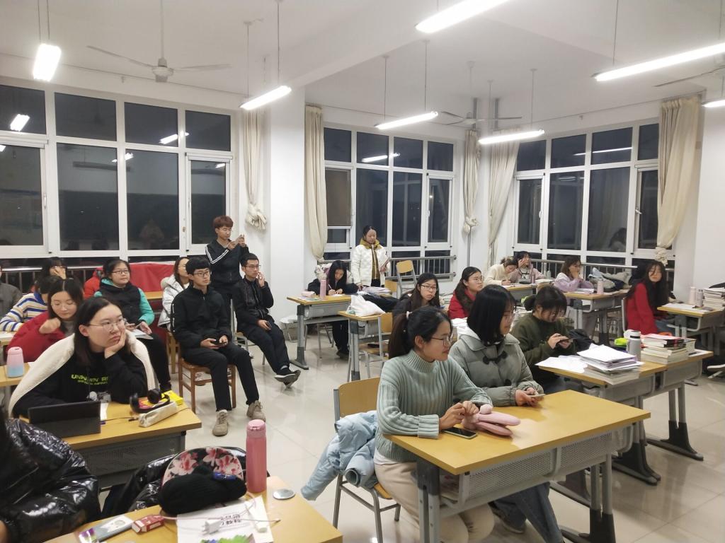 此次交流会邀请了专四考试中取得优异成绩两位学姐,她们分别从专四考试题型、备考、应试等方面为同学们讲解。学姐们结合考试经验为同学们讲述了重要的应试技巧,并就专四考试中的各项得分点进行了解释和分析。此外,学姐们还和同学们分享了一些学习日语的视频网站,为准备专四的同学们指明了应对专四考试的有效策略。在结束后,同学们与学姐针对一些具体问题进行了更深入的交流。