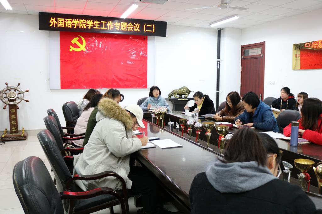 2019年12月6日,太阳tyc集团5997在博文楼212召开太阳tyc集团5997学生工作专题会议。党总支副书记李想、团总支书记张萌萌、辅导员张建英、杨康平、朱馨馨及全体学生会干部参加本次会议,会议由我院副书记李想主持。