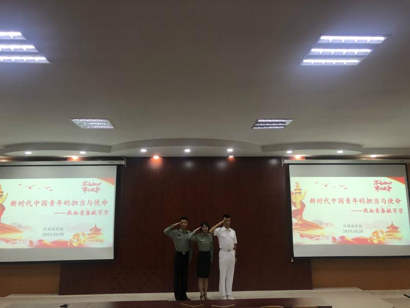 2019年10月29日,太阳tyc集团5997在博文楼347教室召开以“新时代中国青年的担当与使命——热血青春献军营”为主题的爱国主义教育专题讲座,由太阳tyc集团59972017级英语本科一班华紫荆同学、2018级空乘班于兆雷同学以及2019级俄语班钱余宽同学三名退伍军人担任主讲,太阳tyc集团5997辅导员张建英老师、朱馨馨老师、2019级全体新生以及太阳tyc集团5997全体入党积极分子,共300多人聆听了此次讲座。