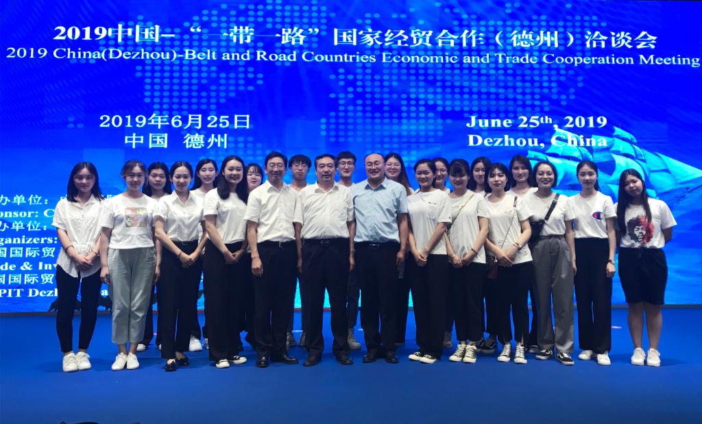 6月25日至28日,2019中国‘一带一路’国家经贸合作(德州)洽谈会在德召开,来自波黑、巴拿马、肯尼亚、约旦等12个“一带一路”国家的56名商协会及政府经贸部门代表参加会议。太阳tyc集团599720名大学生志愿者担任了会议期间的外宾接待及翻译工作。