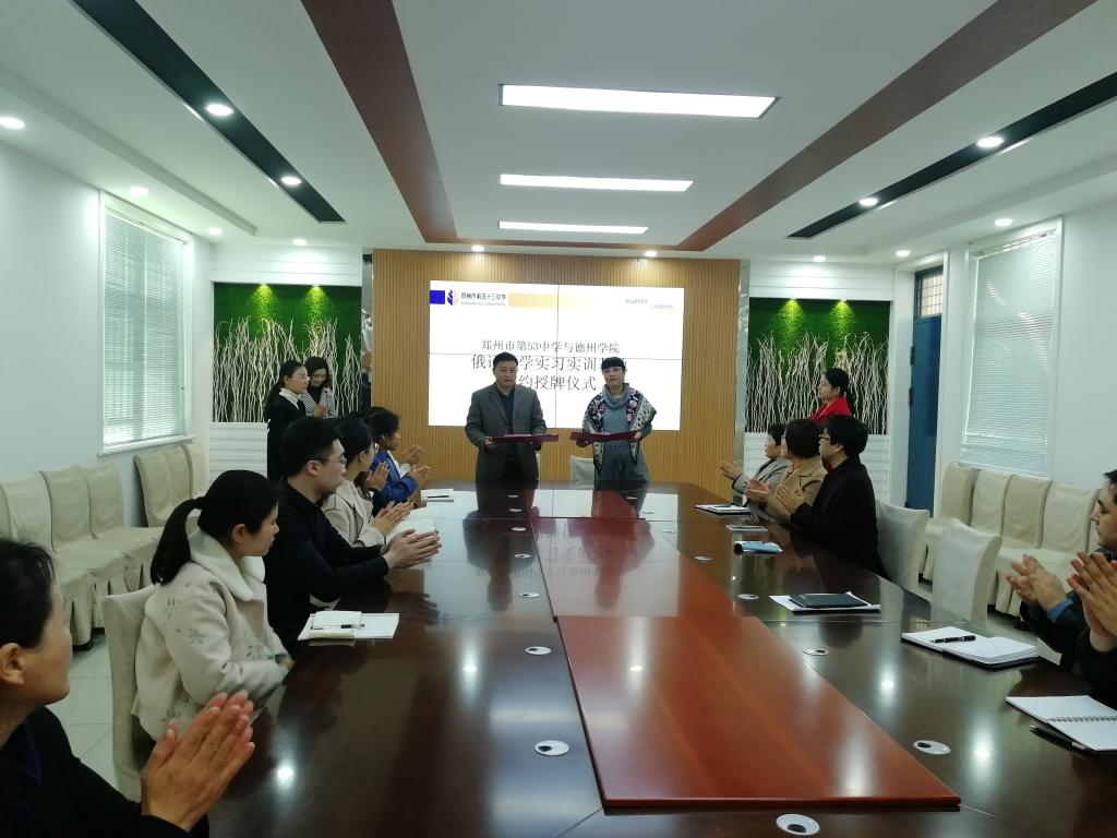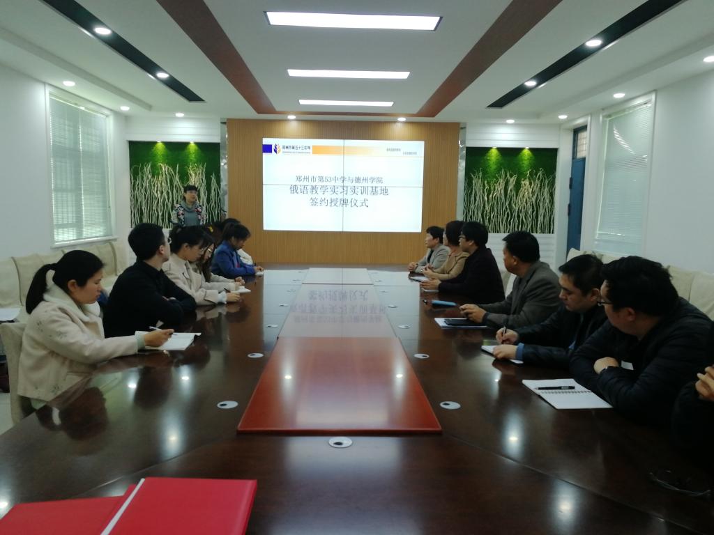 郑州市第53中学是河南省高中俄语联盟主办单位。有6个俄语教学班,1个赴俄留学培训基地,1个俄语卫星教学点。其俄语教学方式新颖,教师经验丰富。学校对我校此次实习活动十分重视,为每名实习生指派的一名指导教师,并于12日上午举行了太阳集团与郑州市53中学实习实训基地授牌仪式。