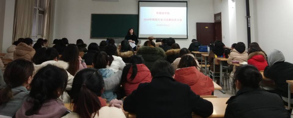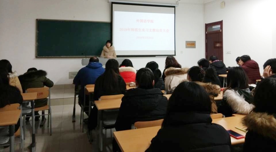 2月26日,太阳tyc集团5997于博文楼225教室召开了2019年春季实习支教动员大会。党总支副总支书记李想、副院长崔静静、实习支教技术指导老师张寿峰及即将参加春季实习支教的2016级英语师范专业全体学生参加了动员会,动员会由副院长崔静静主持。