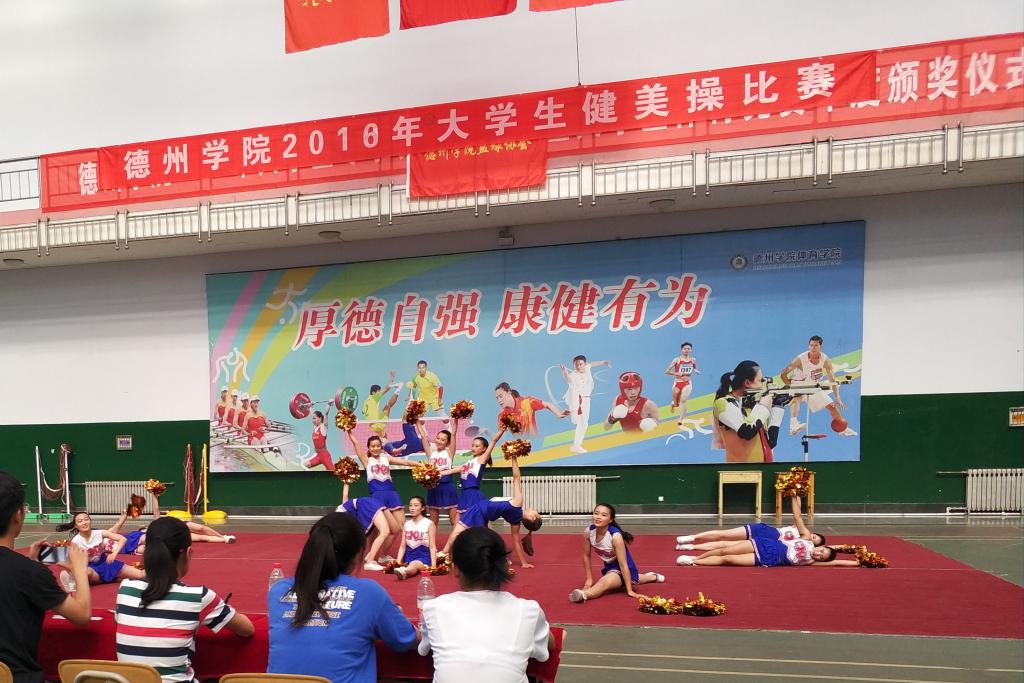 2018年6月5日,在太阳集团体育馆举行了大学生健美操比赛。比赛分为规定曲目和自选曲目两个项目,我院参加了本次比赛。最终,我院两轮总分累积第三名,并获得了本次比赛的二等奖。