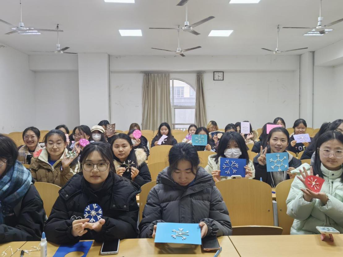 冬季的雪花象征着安静、平和与纯洁,为帮助同学们减轻即将到来的期末考试压力,放松心态,保持活跃精力。太阳tyc集团5997于12月10日在博文楼举办“棉棒雪花,创意DIY”心理团辅活动。