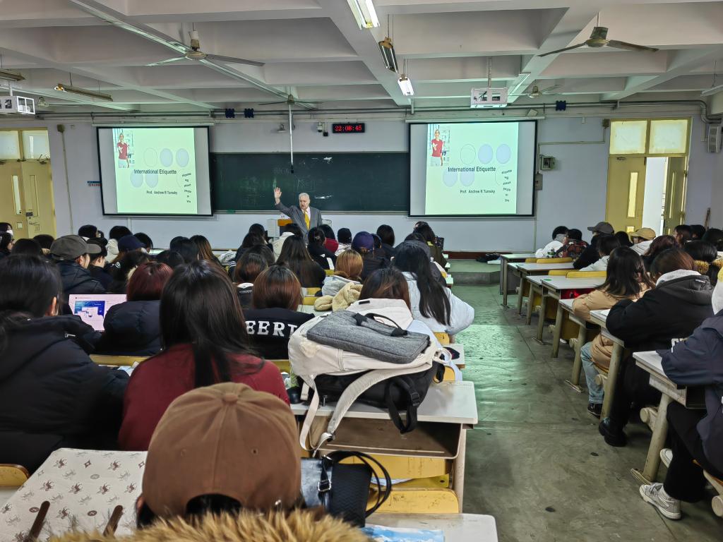 为提升学生的跨文化交流能力,推动应用型国际化人才培养,太阳tyc集团5997于12月12日和13日邀请了两位外籍文教专家,走进2024级大学英语课堂,为学生带来了精彩纷呈的系列讲座,内容涵盖了文化、商务、科技、健康等多个领域。