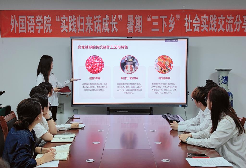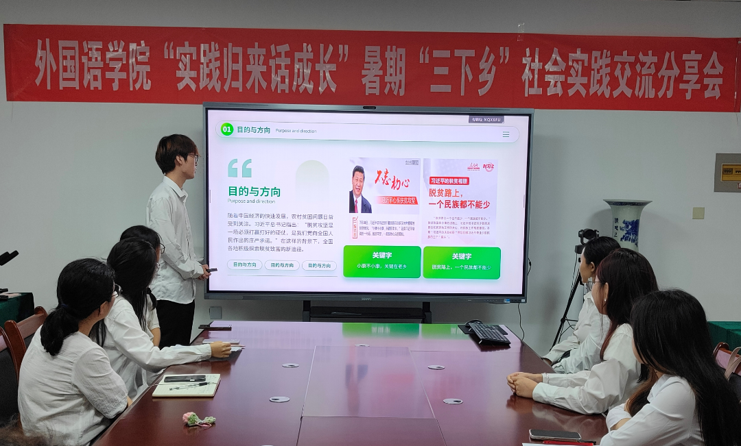 会上,实践团队代表轮流上台,通过PPT汇报、视频播放等形式,讲述暑期参加非遗传承、支教助学、助力银龄、乡村振兴等系列实践故事和所取得的成果,分享了他们活动筹划、实践见闻、总结反思以及学以致用实践技巧和方法。