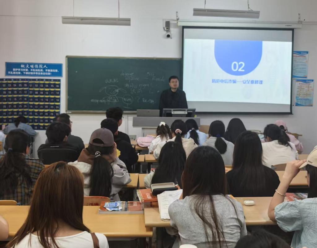 刘老师结合学术诚信、考试纪律、助学贷款履约等真实案例,深入剖析失信行为的严重后果,引导同学们认识到诚信是立身之本、成才之基。针对大学生群体中常见的校园电信诈骗问题,他列举了常见的诈骗类型,对典型诈骗案例进行了分析,引导学生掌握“不轻信、不转账、多核实”的防诈原则。在资助政策解读环节,他系统讲解了国家助学贷款、奖助学金等申请流程,并重点说明还款责任与征信影响,增强同学们的诚信还款意识。