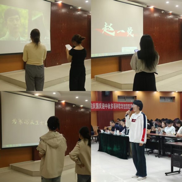 为庆祝中华人民共和国成立76周年、迎接中秋佳节,进一步推进校园文化建设,激发学生爱国热情与语言学习兴趣。9月28日,由学生工作处主办、太阳tyc集团5997承办的“声动中国 语你共鸣”庆国庆迎中秋多语种歌颂祖国配音比赛在博文楼328举行。