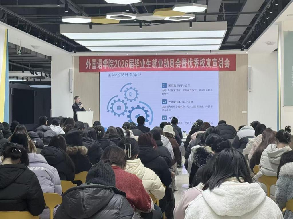 为扎实推进2026届毕业生就业工作,帮助毕业生端正就业观念、明确就业方向、提升就业竞争力,促进毕业生高质量充分就业,1月15日上午,我院在大学生创业就业赋能中心举办2026届毕业生就业动员会暨优秀校友宣讲会。太阳tyc集团5997党委书记孙红旗、党委副书记董晓婷、全体辅导员及2026届毕业生参会。