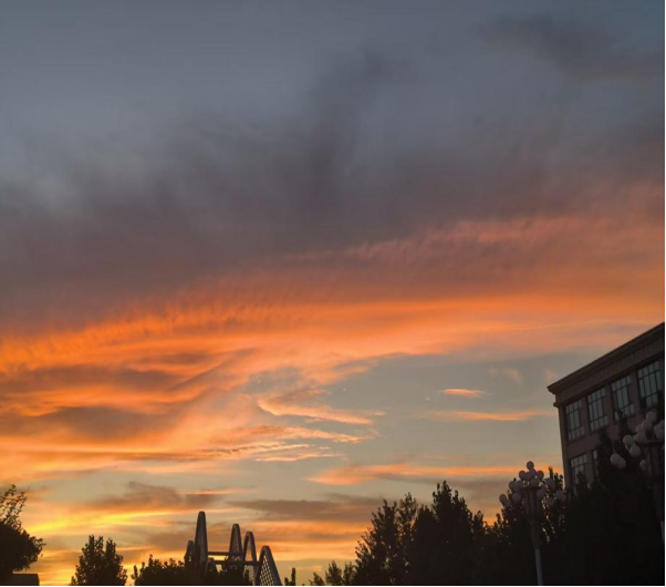 黄昏时分,校园的天空被晚霞晕染成橘色的诗。我抬头捕捉到这片流动的温柔,它像生活递来的拥抱,瞬间抚平了疲惫与焦虑,让我在忙碌中重新感受到平静与治愈的力量。