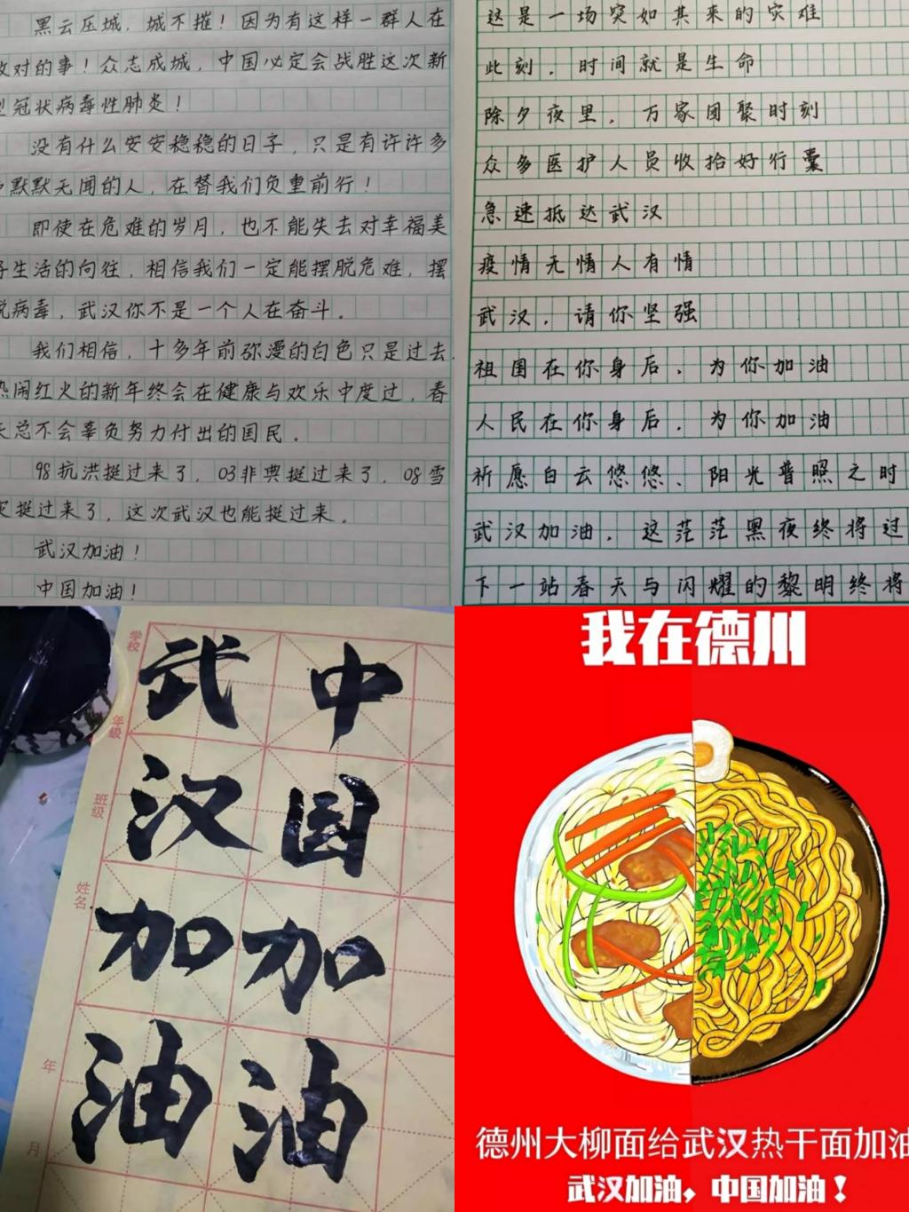太阳tyc集团5997全体学生党员、入党积极分子们围绕“加油武汉,福安中国”这一主题,以硬软笔书法、漫画、海报设计、油画等多种创作形式,为武汉加油,祝福祖国,和全国人民一起“战疫”。截至目前,共收集到作品40余幅,他们执笔做枪,讴歌战斗在阻击疫情第一线的工作者,赞颂群众身边阻击疫情的感人事迹,普及防控疫情的科学知识。