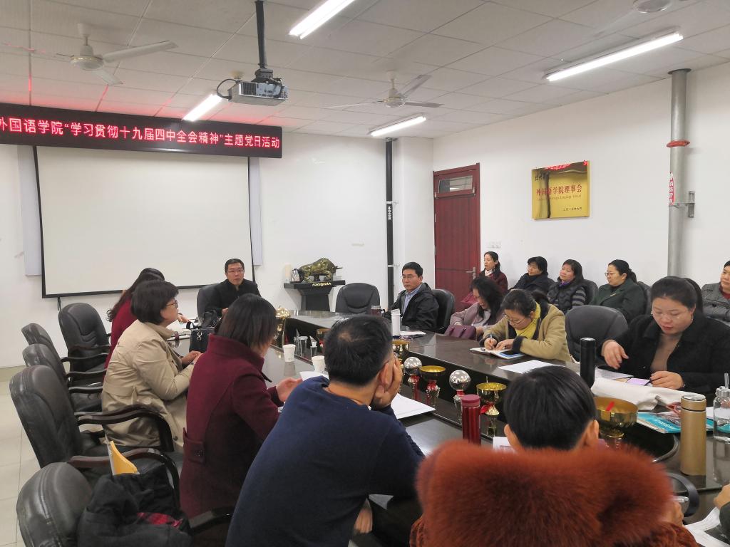 与会人员集中学习了《中国共产党第十九届中央委员会第四次全体会议公报》并着重学习了《中共中央关于坚持和完善中国特色社会主义制度、推进国家理论体系和治理能力现代化若干重大问题的决定》及新华社、人民日报等中央媒体刊发的评论文章。