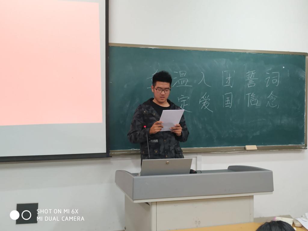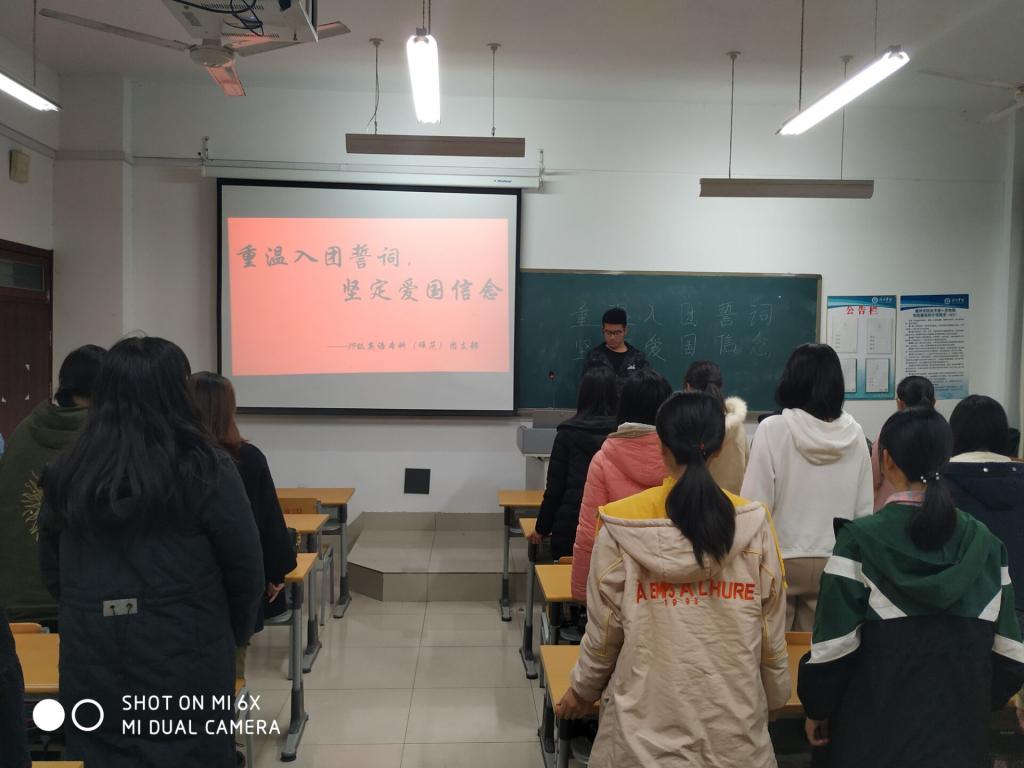 2019年11月10日,太阳tyc集团5997在博文楼举行重温入团誓词活动,2018级英语本科二班、英语教育二班团支部,2019级英语本科班、英语教育二班团支部参加活动。