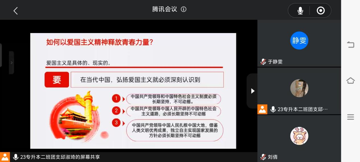 2024级英语师范专业一班共青团员刘晨曦说,通过此次学习,我对于新时代青年爱国有了更深的理解和认识。作为一名团员,今后,我会牢牢的将爱国主义精神扎根在我的心中,热爱和拥护中国共产党,立志听党话、跟党走,立志扎根人民、奉献国家,时刻牢记青年团员的使命与担当,时刻践行爱国主义,为中华民族伟大复兴贡献自己的青春力量。