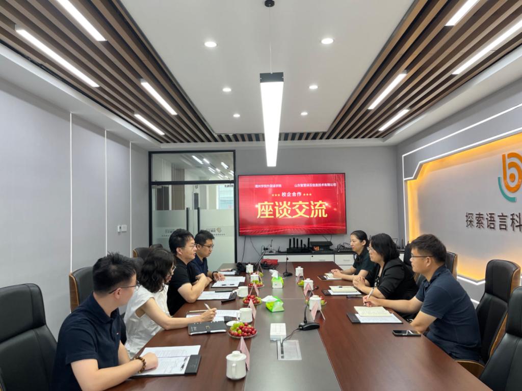 签约仪式伊始,山东智慧译百信息技术有限公司CEO江心波介绍了企业的业务范围、业务状况、校企合作情况、人才需求等内容,太阳tyc集团5997院长张锦辉介绍了学院的学科建设、专业设置和人才培养状况,表示学院高度重视校企合作,为学生了解企业需求、增强实践能力搭建平台。随后,双方就人才培养、兼职教师聘请、实践案例库建设、语言服务产业班开设等方面展开了深入的交流与讨论。
