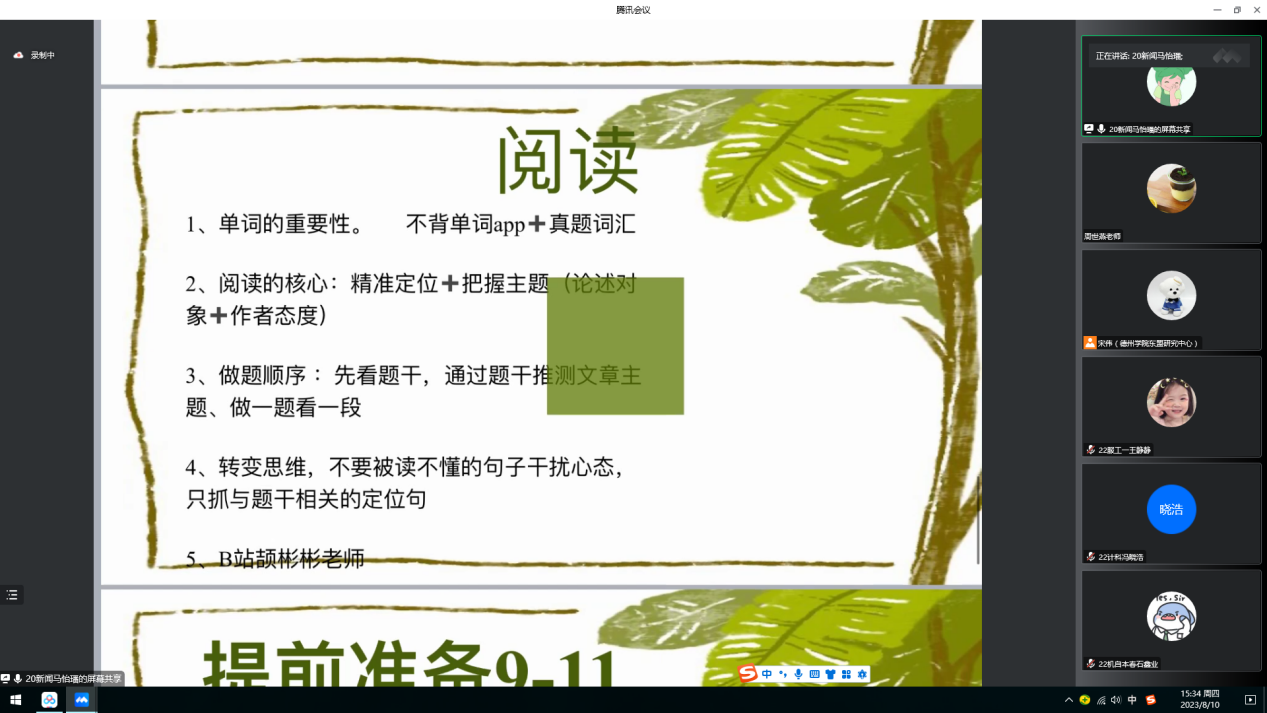 为进一步提高2020级、2021级学生的考研热情,明确考研目标,建立良好的学习方法、制定科学的复习规划,解决在备考中所遇到的疑困,为考研打下坚实的基础,7月12日-23日,太阳tyc集团5997组成考研辅导教师团队,开设10个暑期考研辅导班,通过线下上课、腾讯会议、QQ群解答、钉钉课堂等多种方式对公共英语、翻译硕士、学科英语、外国语言学与应用语言学及跨专业考研进行集中辅导。