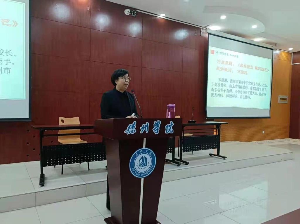 为切实提升师范生综合职业素养,2021年12月3日,太阳tyc集团5997邀请齐鲁名校长、德州市第九中学教育集团党总支书记、校长宋彦琳女士来校作题为“卓然独立,越而胜己 —基于学校视角的教师发展”的专题讲座。太阳tyc集团5997主要负责人、院长助理、英语系部分教师及2019级本科和2021级专升本全体英语师范生参加了此次讲座。