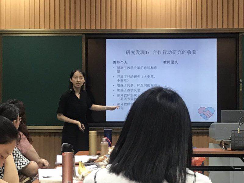 活动伊始,太阳tyc集团5997崔院长介绍了此次青年教师教学沙龙活动主题的背景,龙老师以综合英语教学改革为例,从研究背景、研究过程和研究发现三个方面介绍了对教师合作行动的研究成果。程老师对教师合作行动研究进行了反思,做了关于提升教师自主性、提高教学能力的报告,逐一讲解了教师自主概念内涵、教师自主性的影响因素和教师自主性的提升途径。两位老师结合自身的教学实践跟老师们作了经验交流。之后参会者结合本次沙龙的主题进行自由交流。青年老师们纷纷就教学过程中遇到的问题和瓶颈、新教学方法的有效使用、人才培养方案的修定等方面踊跃发言,大家畅所欲言,各抒己见,场面热烈,参与者收获颇多,此次教学活动取得了圆满的成功。
