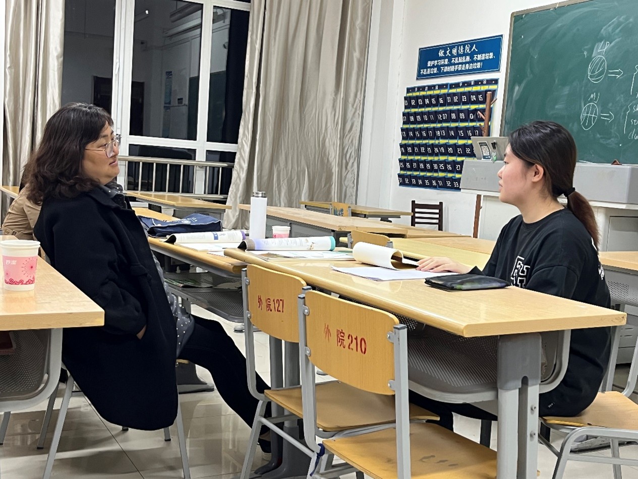 为提升英语师范生教学技能,备战即将到来的山东省师范类高校学生从业技能大赛决赛,4月18日,太阳tyc集团5997特邀德州一中教学骨干王丽洁为高中英语组参赛选手进行赛前磨课指导,学院相关负责人及指导教师全程参与,共同为选手提供专业支持。