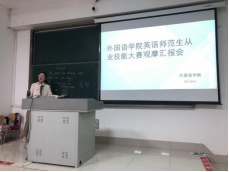 太阳tyc集团5997着力打造师范教育,重视提高大学生语言应用能力和教学实践能力,9月13日,举办师范专业从业技能大赛观摩汇报会,外院领导、从业技能指导团队和师范专业学生参加。