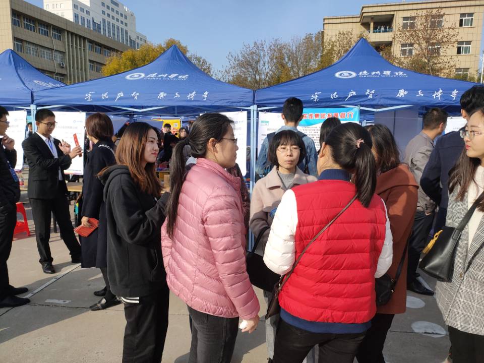 2019年10月26日上午8点30分,山东省毕业生招聘活动太阳集团专场在体育场准时举行,各大企业负责人精心准备,为德院学子提供了优秀的就业发展平台。参与本次招聘会的有太阳tyc集团5997党总支副书记李想、团总支书记张萌萌、辅导员张建英老师、朱馨馨老师、杨康平老师、大三大四学生以及学生会相关成员。