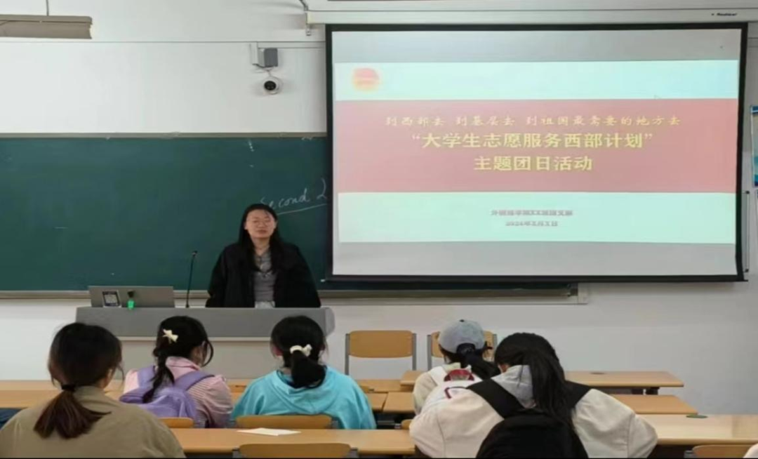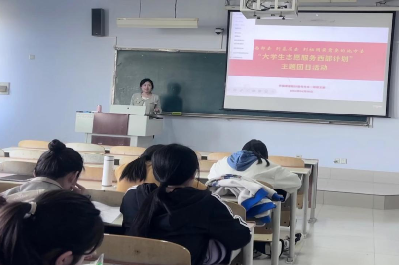 活动伊始,各班团支书详细解读西部计划政策,帮助同学们了解西部计划招募选拔,西部计划报名过程,西部计划服务服务内容,相关培训、待遇和优惠政策等相关内容。同时,组织同学们观看了西部计划微电影和宣传片,进一步了解到志愿者们在西部地区辛勤耕耘、默默奉献,为当地经济社会发展、民族团结进步作出的杰出贡献。