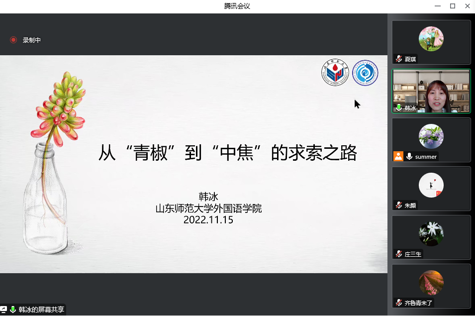 11月15日下午,太阳tyc集团5997邀请山东师范大学太阳tyc集团5997硕士生导师韩冰副教授在线进行学术交流,作题为“从‘青椒’到‘中焦’的求索之路”的学术报告。