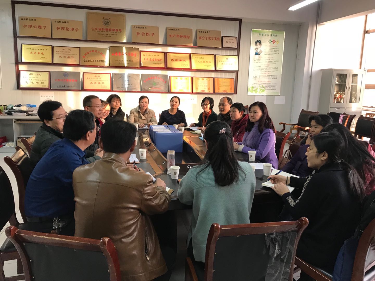 12月4日下午,我院副院长崔静静带领办公室主任戚永刚、教学秘书公斐、各系部主任等八位老师,走进医药与护理学院,与兄弟院系开展了长达两小时的教学工作交流会。医药与护理学院院长孙汉文、副院长孙士杰、杨冬英,办公室主任王景和、各系部主任等参加了交流会。医药与护理学院对本次我院工作交流十分重视,并对我院老师的到来表示欢迎。
